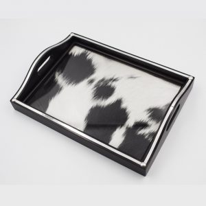 Wooden Mahogany Tray With Peruvian Sterling Silver Details And Cowhide application- medium