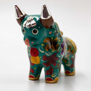 Handcrafted 10 cms. Ceramic Pucara Bulls with Peruvian Sterling Silver Details – Set x 2 pieces – BUY THE SET AND SAVE!!!