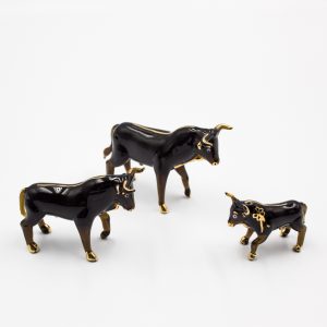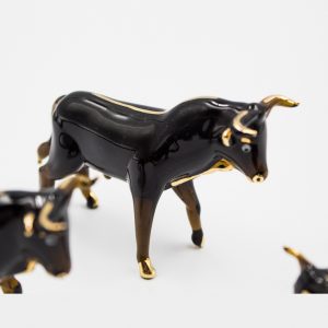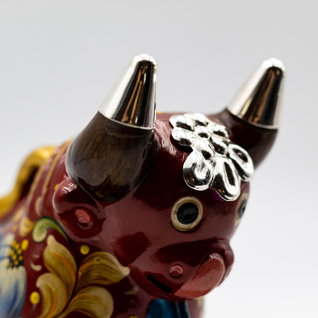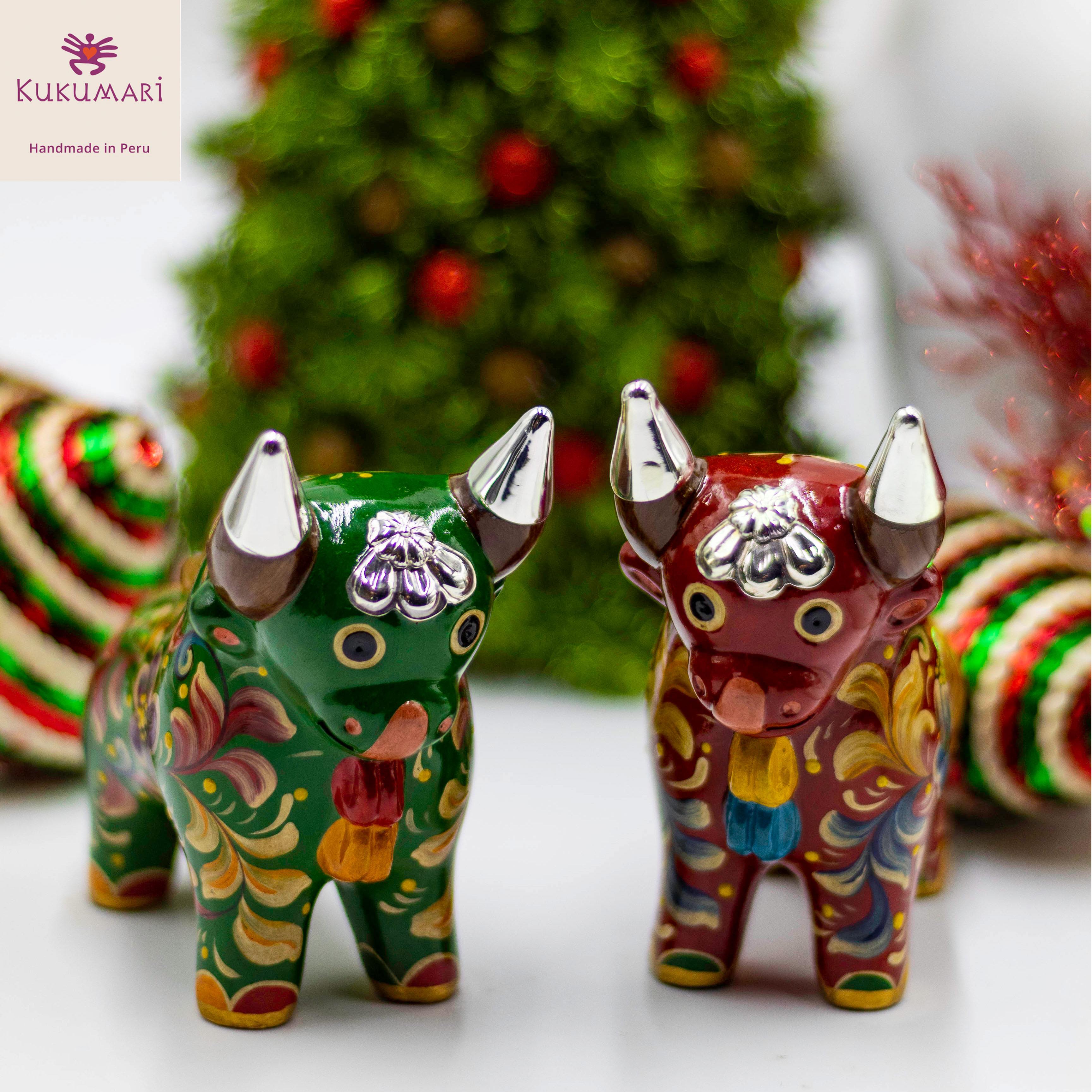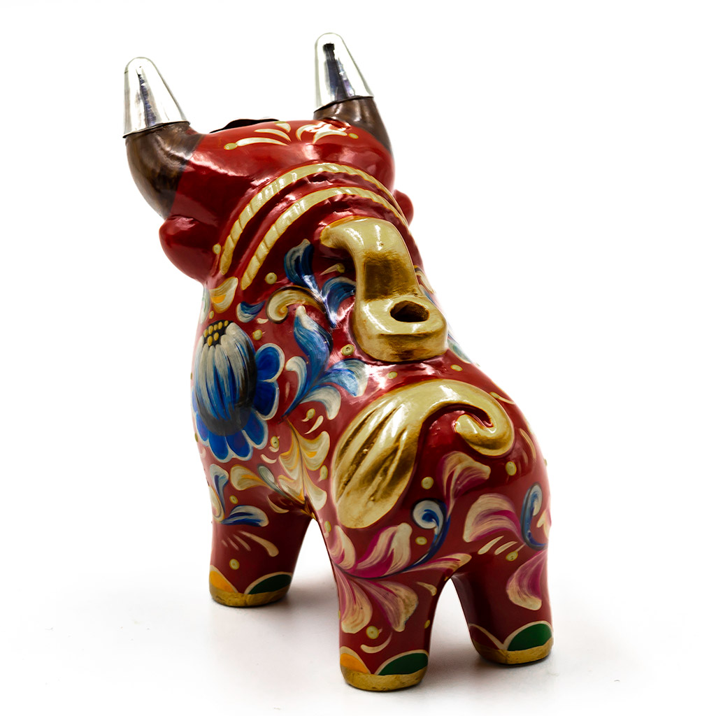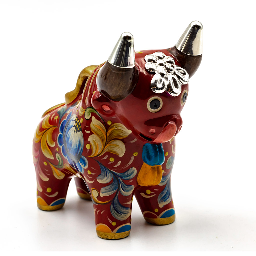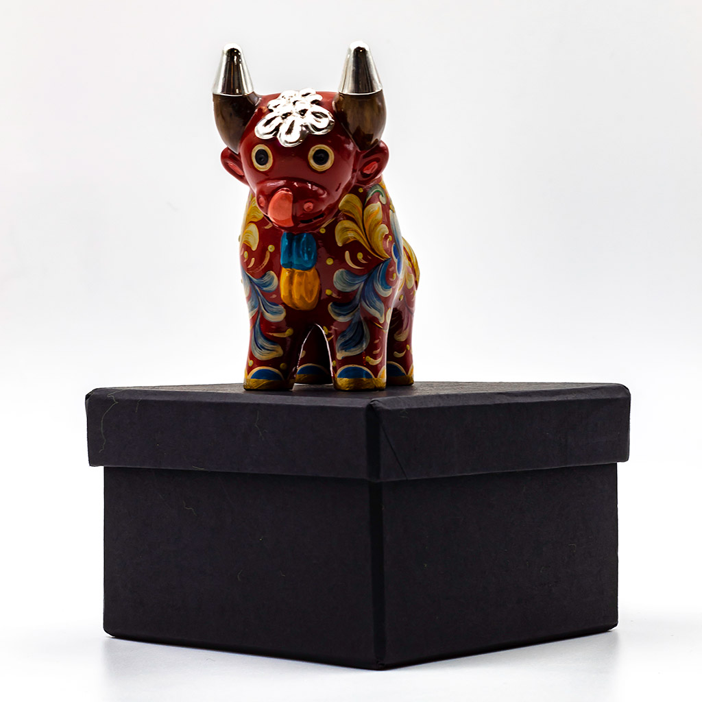 Handcrafted 10 cms. Ceramic Pucara Bull with Peruvian Sterling Silver Details – Red