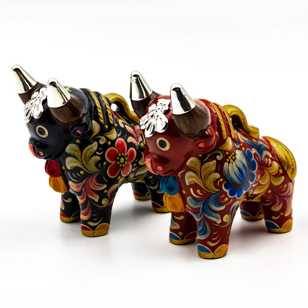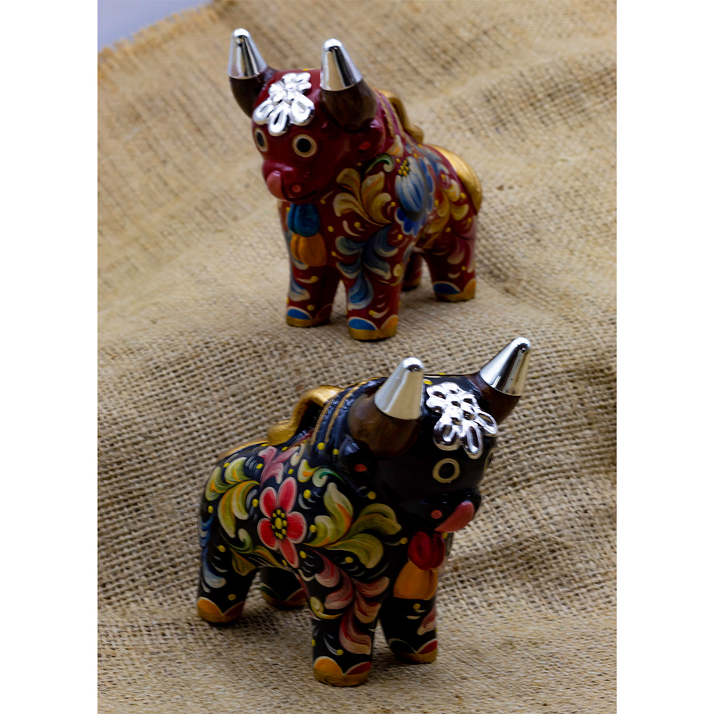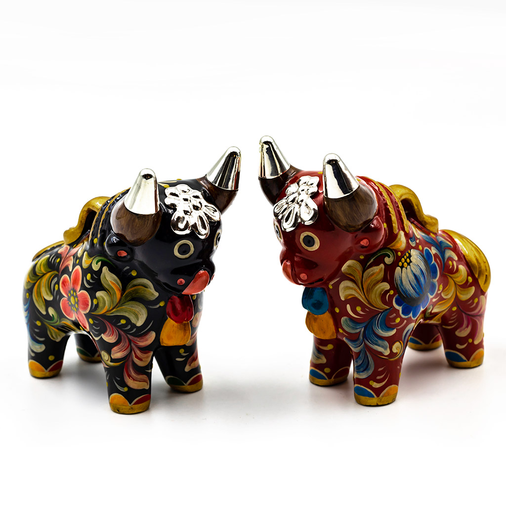 Handcrafted 10 cms. Ceramic Pucara Bulls with Peruvian Sterling Silver Details – Set x 2 pieces – BUY THE SET AND SAVE!!!