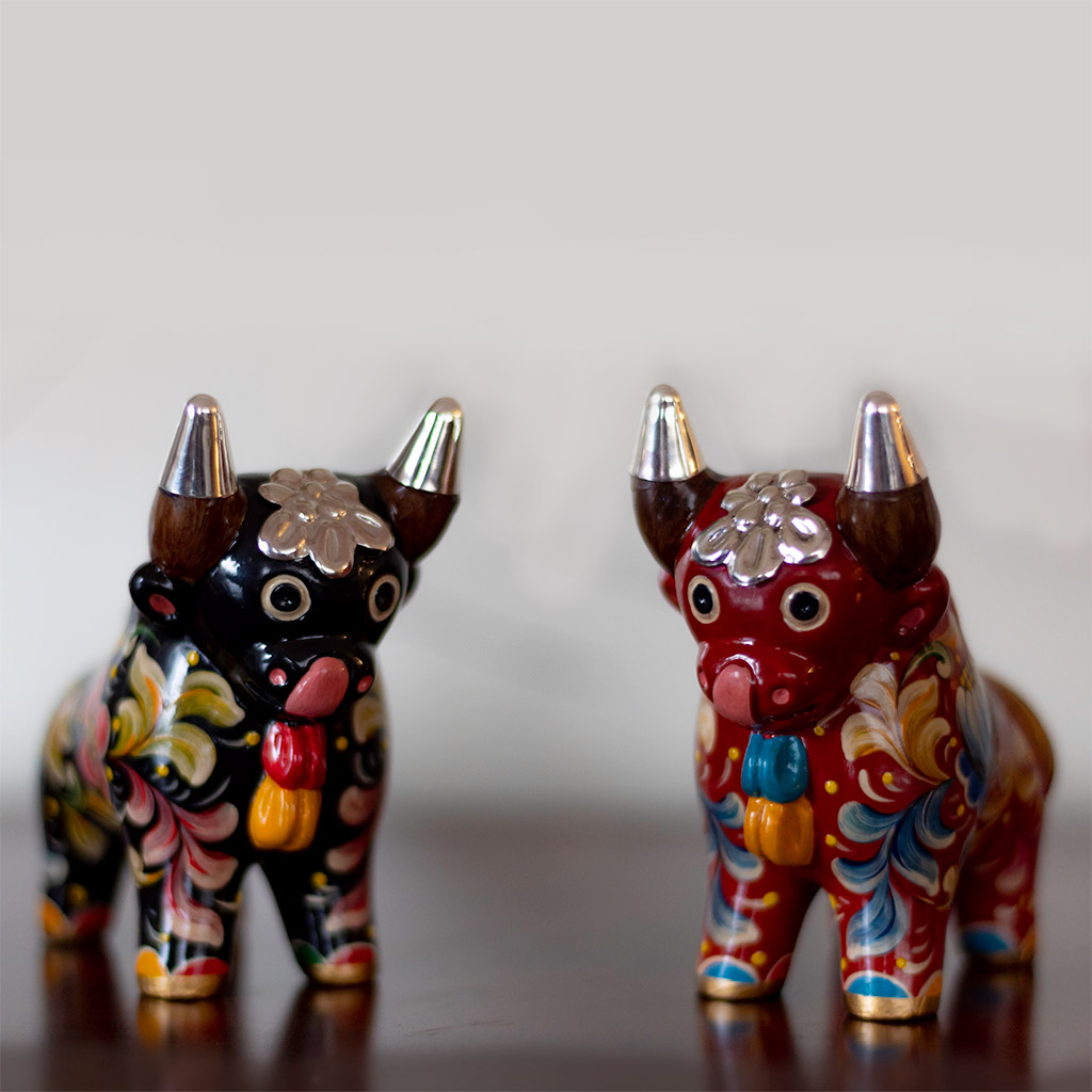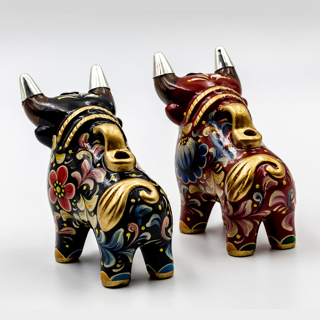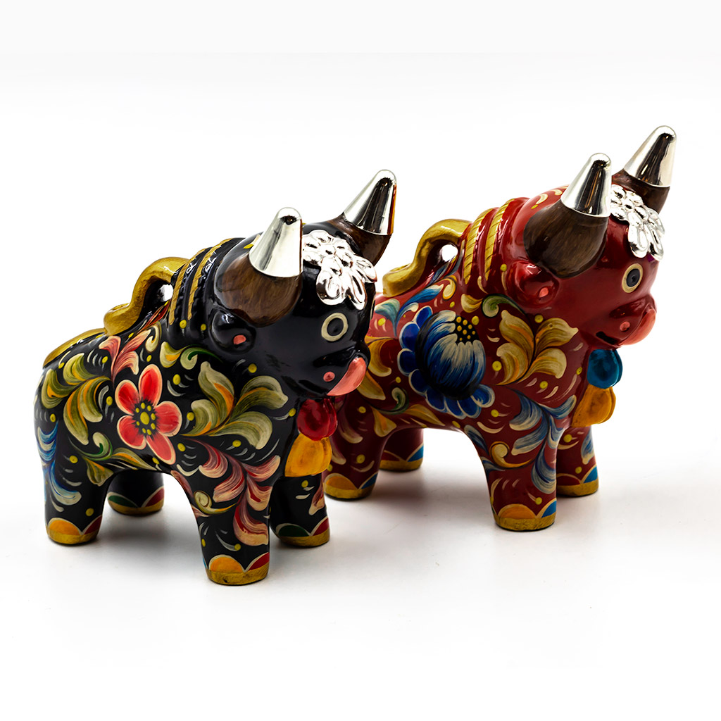 Handcrafted 10 cms. Ceramic Pucara Bulls with Peruvian Sterling Silver Details – Set x 2 pieces – BUY THE SET AND SAVE!!!