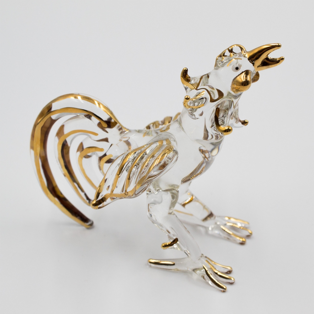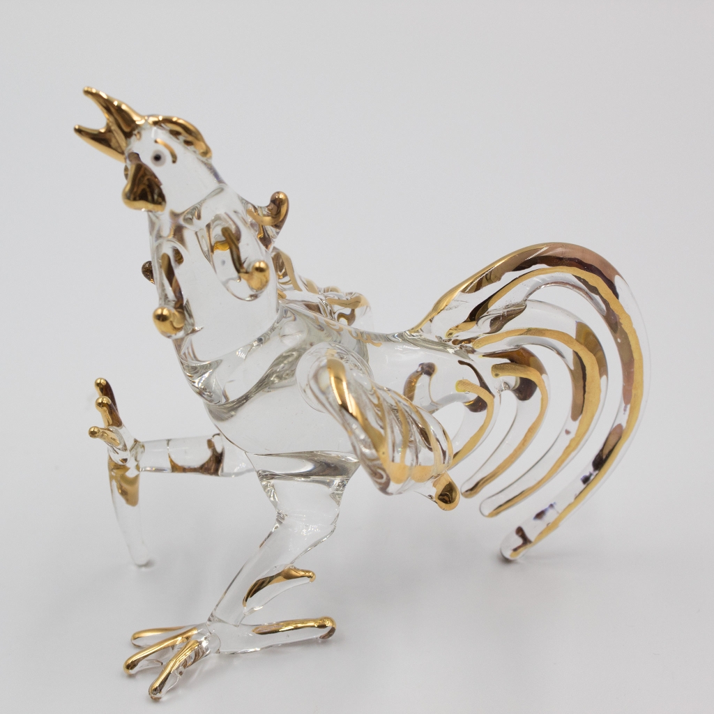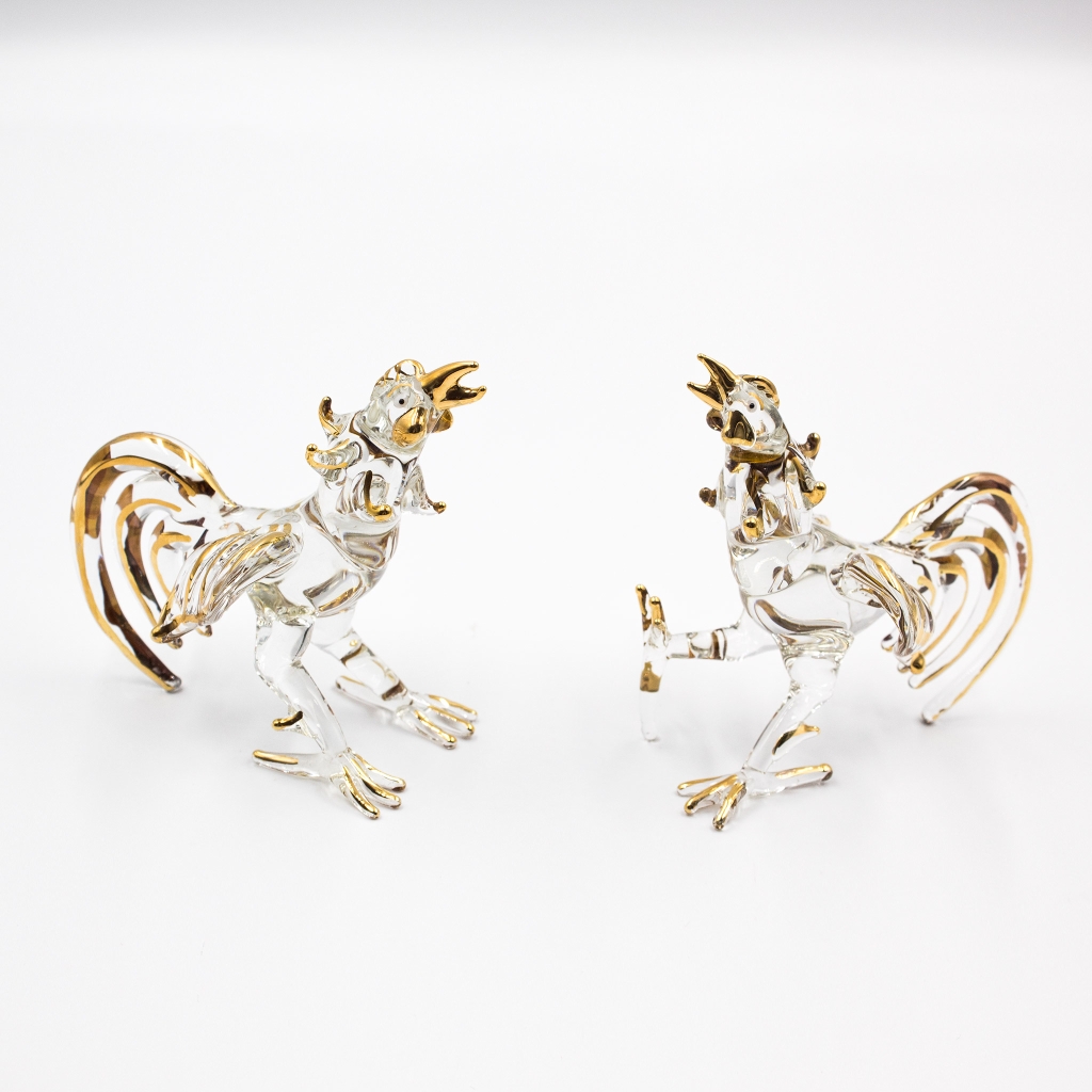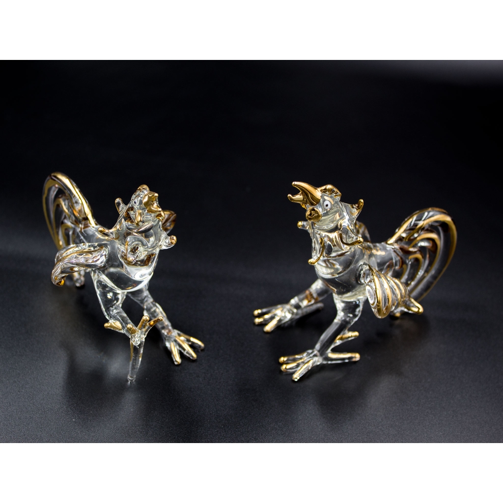 The Peruvian navajero (with blades) cock originated around the time when Peru was part of the spanish colony. It is a mix breed of roosters from different parts of the world which were brought to Lima through the port of Callao through out the years since the Spanish Conquest period and now is part of the Peruvian cultural tradition. Cockfighting in Peru is legal and the Peruvian bloodlines are getting very popular and valued among the cockfighting coutries around the world. Take home these handmade glass figures carefully crafted by our artisan Milton Ríos. They are around 10 cms. tall and have details in liquid gold paint and are a great gift for any occasion.
